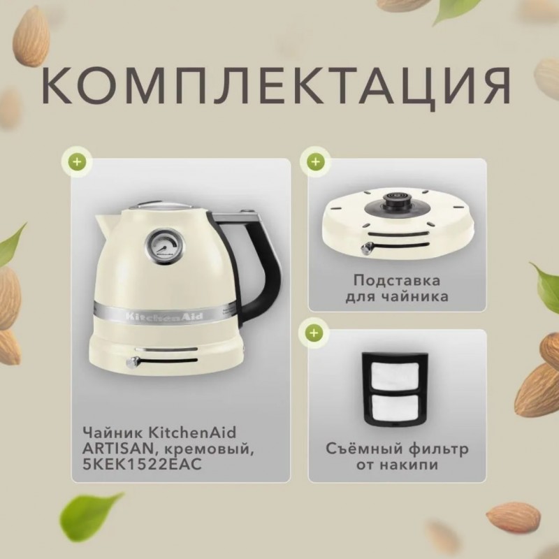 Чайник KitchenAid ARTISAN, подставка с поворотом на 360°, съемный фильтр от накипи, отсек для сетевого шнура / намотка кабеля