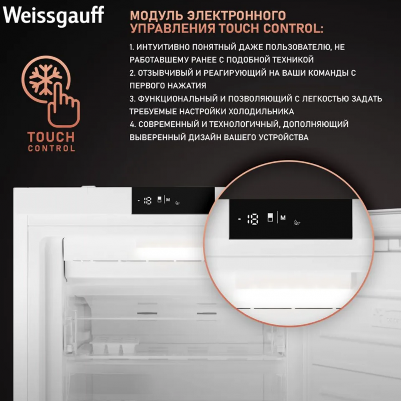 Встраиваемый морозильник Weissgauff с объемом морозильной камеры 221 литров,  мощностью замораживания до 15 килограммов в сутки и полностью электронным управлением - это по-настоящему современный и вместительный помощник в хранении продуктов на вашей кухне!
